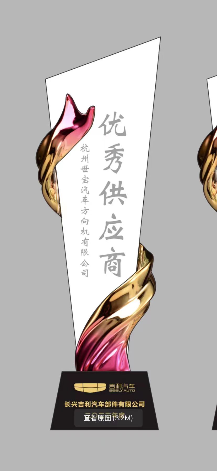 吉利长兴优秀供应商奖